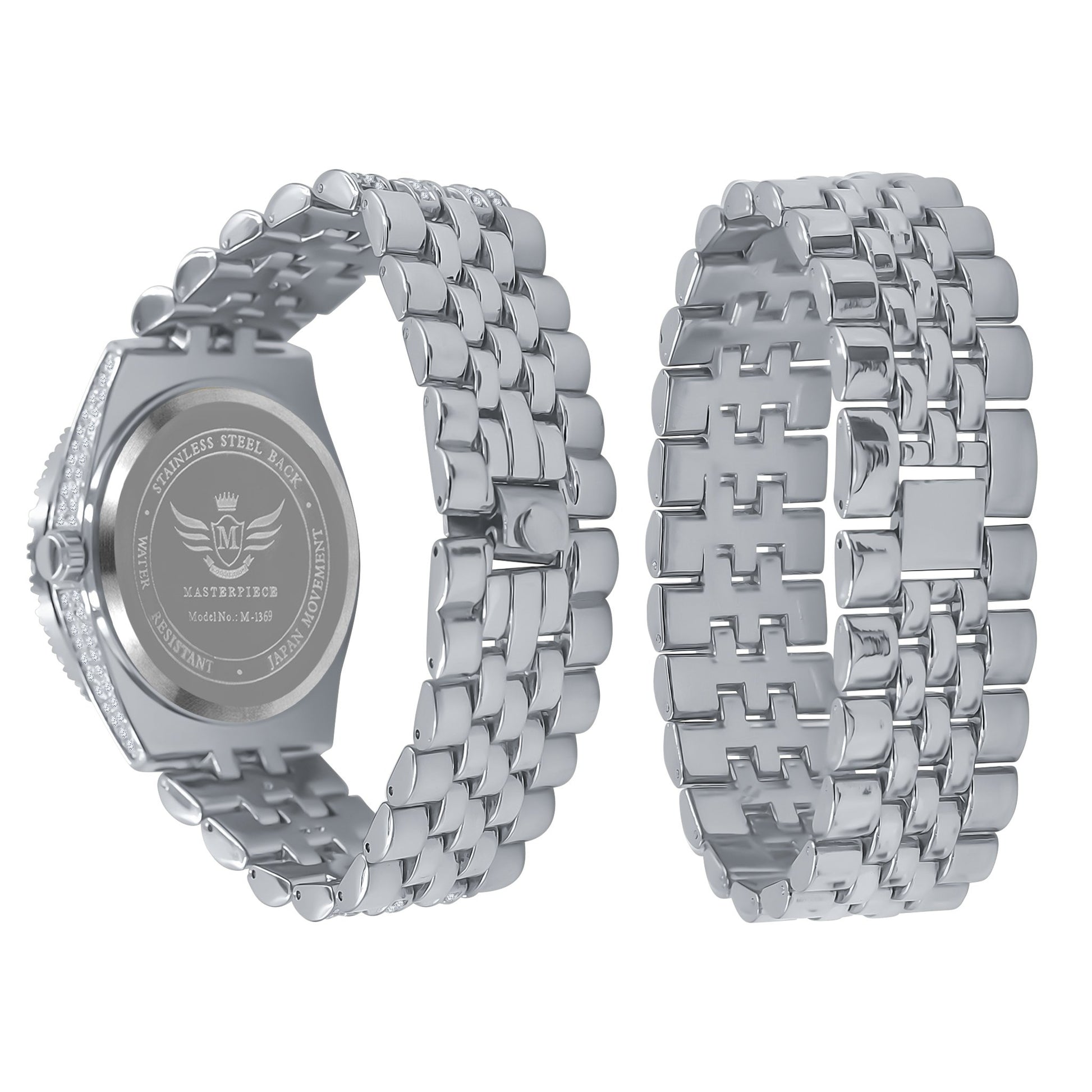 this simple yet stylish slatey timepiece doesn't need words to express its class. Its hour markers in urdu digits, metal strap and bezel adorned with CZ stones, make this watch outstanding. Portraying the moon rays in dark, this ravishing watch will be your best companion in the night events. Go for this wonder, and achieve sleek and sophisticated look throughout. Enjoy with credence the timepiece along with bracelet.