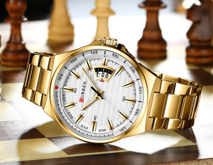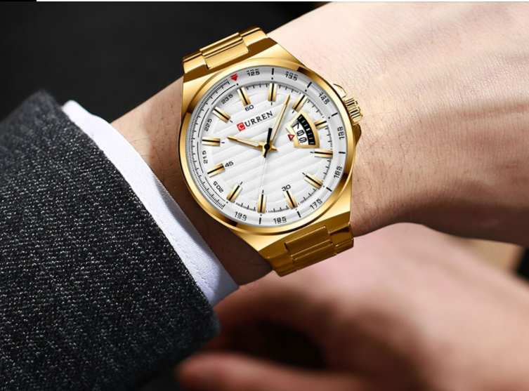 AUREATE this sophisticated timepiece delivers white colour dial with date and 24-hour markers in decimals to enhance your overall mien. This item has been meticulously equipped to offer the sublime duo of dominance and dignity. Appropriate for mass of the watch, the golden stainless steel strap and the satiny case, all make this watch super majestic, long-lasting and comfortable to wear.